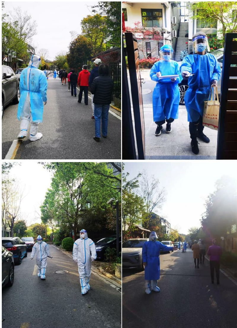 4月9日这天,上海市全员抗原和核酸检测,谢老师带着女儿,清晨5点、迎着曙光他们逐户敲门,发放抗原试剂,再回收统计,一直干到8点。下午3点父女俩又投入到全员核酸检测服务中,秩序维护、扫码、孤寡老人的上门检测……一直忙到晚上8点。