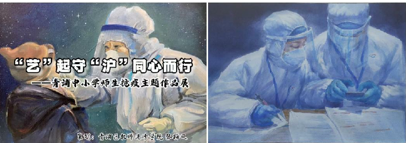 张梅凤老师在组织好区域中小学美术学科教师开展线上教学教研工作的同时,克服居家办公的困难,创作抗疫主题画,这极大鼓舞了师生同心抗疫的士气,传递了正能量。在张老师的示范引领下,中小学美术学科教师纷纷拿起手中的画笔,用个性化的美术语言宣传抗疫事迹、歌颂最美“逆行者”。在教师作品的感召下,居家学习的孩子们也用稚嫩的双手加入到了这场用图画传递情感的活动中,让感恩与奋进同在,智慧和创意尽显。