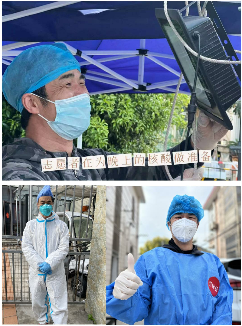 疫情开始后,作为首批报道的志愿者,张卫平老师当天就开始参与华新镇朱长村志愿者服务活动。他接连十个小时挨家挨户发放抗原检测物品,并帮助老人们做检测,受到好评。封控后,他参与了小区内的志愿服务,不曾遗漏一次。发放抗原检测材料,维持核酸秩序,帮助有困难的群众……他不顾疲劳,不厌其烦,耐心周到。多次核酸检测由于开始时间较晚,张老师不仅主动提供自己家的太阳能为现场照明,并与其他志愿者一起,坚持到午夜。他说,不管外界怎样的环境,作为党员一定要竭尽全力为大家服务。