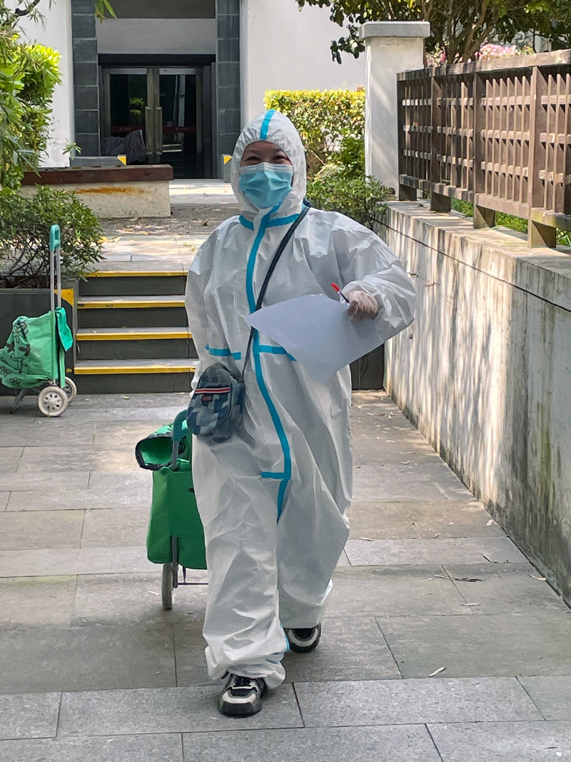 卓月琴老师在完成居家办公的基础上,每天参与志愿服务值班,小区巡视、发放抗原测试剂、快递消毒、运送物资都有卓老师的身影,她成了居民口中家喻户晓的“卓老师”。