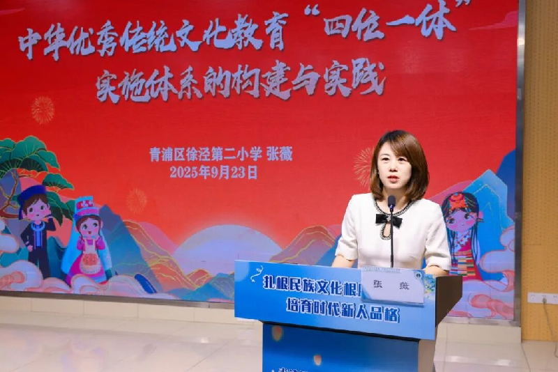 副校长张薇以《中华优秀传统文化教育“四位一体”实施体系的构建与实践》为题作主题交流,详细阐述了学校将传统文化教育融入日常教学与德育工作的具体策略。