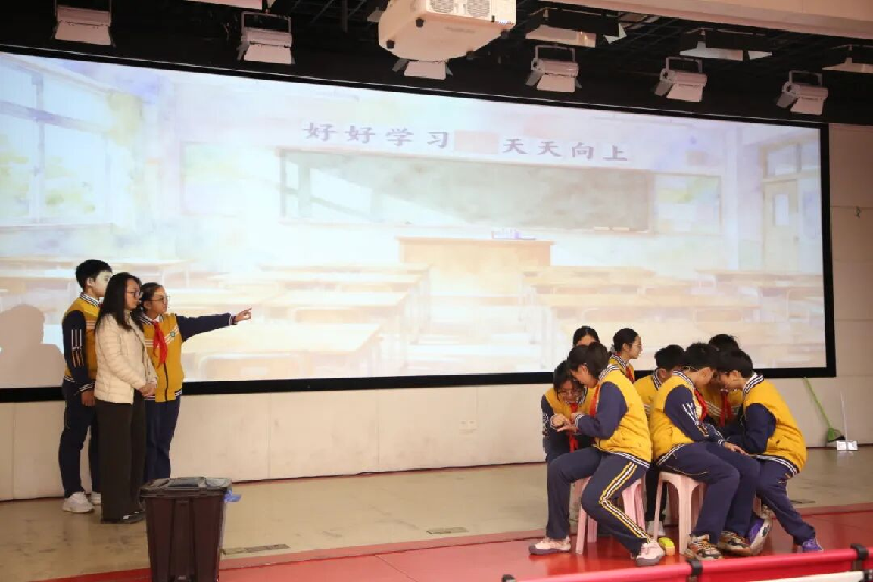 特色展示环节亮点纷呈:预初年级学生的活力大课间展示,将规则意识融入律动之中,实现“以体育行规”;“青壹剧场”演绎的舞台剧《流动红旗的故事》,以温情剧情传递向上向善的精神力量,彰显行为规范教育的温度与唤醒价值。