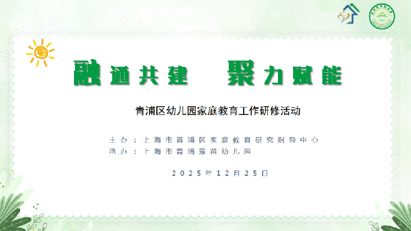 为展示区域园家社协同共育的创新成果,深化协同育人实践研修。2025年12月25日上午,青浦区园家社协同共育实践成果观摩与家教研修活动在豫苗幼儿园顺利举行。上海市家庭教育研究与指导中心理事杨金凤、青浦区教育学院学生德育发展中心德研员许晨曦、青浦毓秀幼儿园园长高华等专家与领导,以及青浦区秀泉学前教育集团家教负责人及家教骨干成员出席本次活动。