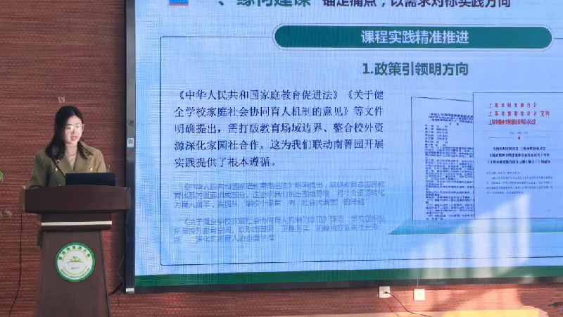 豫苗幼儿园家教负责人黄晓叶老师以《园家社E+,“趣”玩南箐园》为题,重点交流了豫苗幼儿园以园外南箐园优质资源为依托、以亲子定向活动为核心载体的园家社协同育人探索经验。她从“缘何建课”“建课核心”“如何建课”“建课成效”四个方面进行交流,明确“以载体聚合力、以活动传方法、以协同促成长”的核心思路,并详细介绍了幼儿园从资源勘察、工具研发、地图升级到家园共育课程形成的具体做法,充分展现幼儿园在园家社协同育人探索中从“浅层联动”到“深度融合”的跨越,实现了园家社三方力量在幼儿成长路上的同频共振。