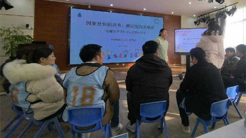 豫苗幼儿园薛沈琎老师及大班组的老师们开展了以《园家社协同共育,趣动定向乐成长》为题的亲子沙龙活动。老师们根据大班幼儿运动发展特点以“微课点拨”“沉浸式陪伴”“互动分享”三个环节呈现了一场既有温度又有深度的沉浸式亲子沙龙。微课点拨环节以活动前期的家长问卷为切入点展开,通过数据分享、家长互动支招等形式,将科学运动理念与实操技巧传递给家长。沉浸式亲子定向运动与互动分享环节,老师们借助场地资源与仪式感设计,将理论转化为实践,有效提升了家长的陪伴能力与参与积极性。活动打破单向传授模式,实现了家园双向互动与经验共享,既帮助家长掌握了冬季亲子运动的科学方法,又营造了家园共育的良好氛围,为幼儿运动能力发展与亲子关系提升筑牢了基础。