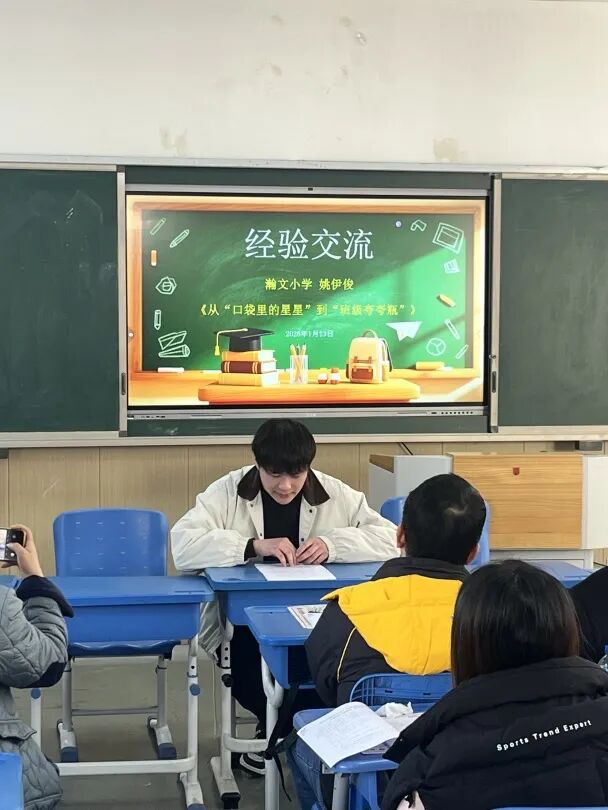 经验交流环节,五位老师分别从育人智慧、实践方略、团队建设等方面带来精彩分享。徐泾二小陈佳瑜老师以《小探索,大成长:班级生态育人小实践》为题,构建三阶共生育人体系,让班级成为滋养生命的生态共同体;佳禾小学陆佳雯老师带来《“潮汐引路,青春引航”》育人故事,从关注女生初潮的成长礼盒,到化解青春期容貌焦虑与性别误解的青春留言板,用细腻关怀为青春期孩子保驾护航;瀚文小学姚伊俊老师分享《从“口袋里的星星”到“班级夸夸瓶”》的实践感悟,以精准捕捉个体微光为起点,搭建集体鼓励平台,让内向学生的内在力量被唤醒;徐泾一小盛韵雯老师以《用责任,为成长“压舱”》为题,分享值日班长手册、夸夸墙、班级文化角等特色载体,构建自律友善、乐学向上的班级氛围;徐泾二小杜雪老师带来《扎根文化沃土 铸就凌霄师魂》,介绍学校“凌霄班主任工作室”建设成果,依托本土文化与凌霄花坚韧不拔的精神,推动班主任专业素养与学生道德成长双向提升。