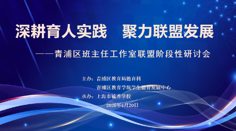 2026年1月20日下午,“深耕育人实践 聚力联盟发展——青浦区班主任工作室联盟阶段性研讨会”在上海市毓秀学校举办。本次研讨会既是一场经验交流会,也是一次课题研讨会,更是一场凝心聚力、共谋发展的赋能会。出席研讨会的有区教育学院学生德育发展中心主任刘丽娜、教科中心科研员张卫平、陈旭宁,以及区班主任工作室联盟成员。研讨会由区班主任工作室联盟主持人卓月琴主持。