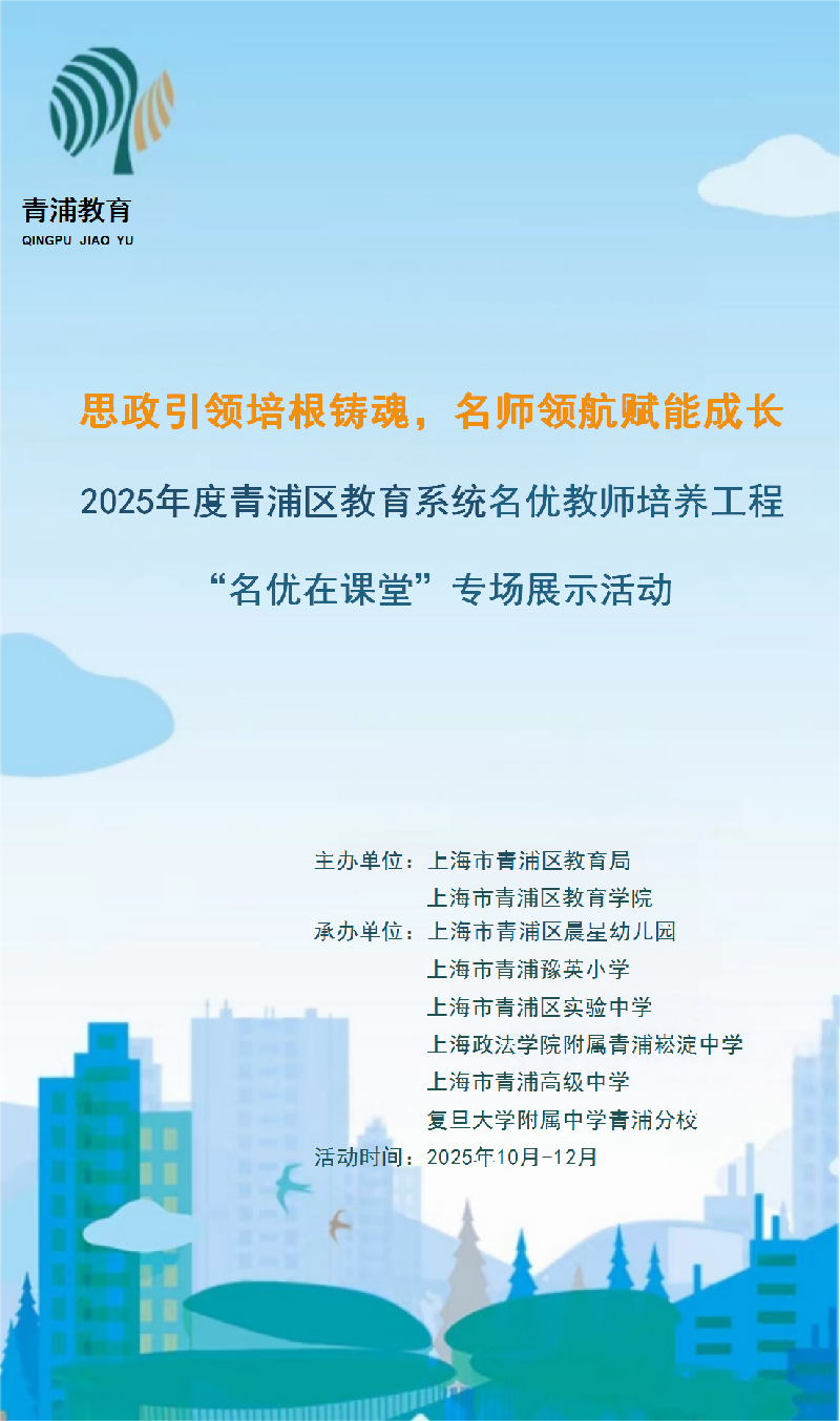 为进一步强化名优教师梯级培养机制效能,推动区域教师队伍综合素养和教育教学水平同步提升,青浦区教育局、青浦区教师进修学院举办“名优在课堂”专场展示活动,通过搭建名优教师教学展示和学术交流平台,宣传名优教师的教育主张和教学风格,呈现名优教师的课堂教学改革实践,发挥名优教师及其团队在区域教育改革与实践中的领航作用。