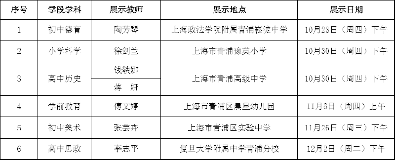 本年度的六个专场活动覆盖中小幼各学段,由青浦区教育系统第八届学科带头人或示范教师进行课堂教学展示。六场活动将于10月至12月期间陆续开展,以学术专家报告、名优教师主旨发言和教学展示等形式,呈现名优教师从课程理念到教学行为的实践转化,展示学术专家、高端教师、教研员、名优骨干等各层级教师在高效落实国家课程中的作用发挥。