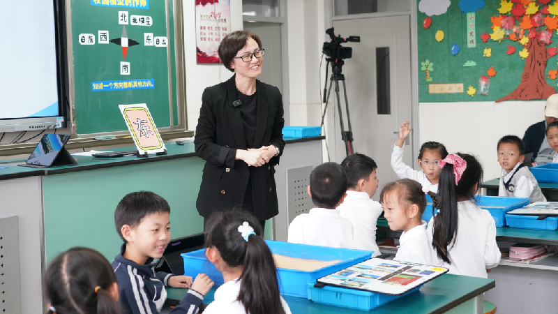 青浦区小学科学学科带头人、青浦豫英小学党支部书记、校长徐剑兰老师执教二年级跨学科主题学习《制作校园模型:为一年级弟弟妹妹介绍校园》。课前,徐老师对照科学和数学两门学科的课标及教材内容,从学习目标、学习内容、学习方式、情境与任务等方面梳理链接点与差异点,为跨学科主题学习构建基础。课堂上,她运用观察和实验的方式引导学生用多种方法及工具辨别东南西北方向,在制作模型和游戏体验的过程中,引导学生利用参照物及方向描述具体位置,帮助学生充分感受到方向在日常生活中的重要意义,有效提高了学生的动手实践和小组合作能力。