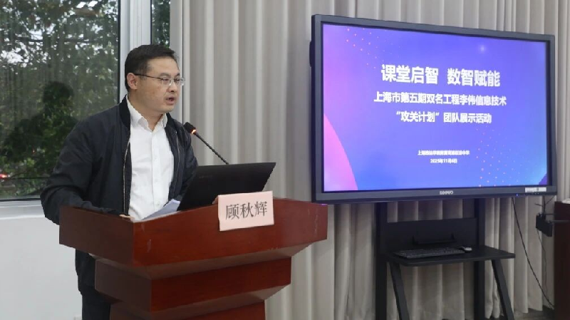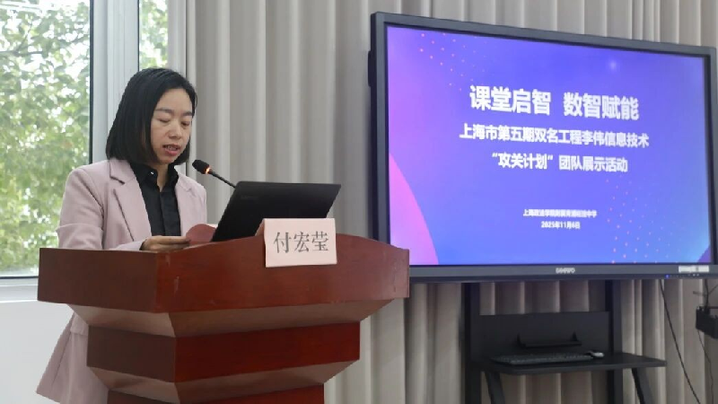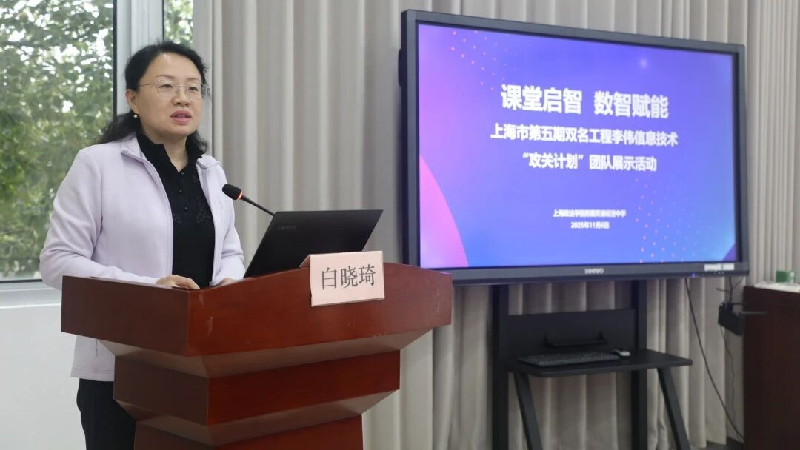 2025年11月6日,上海市第五期名师工程“攻关计划”李伟团队专题研修活动在上海政法学院附属青浦崧淀中学举行。活动特邀上海市闵行中学信息中心主任、正高级教师顾秋辉,上海市杨浦区教育学院信息技术教研员、正高级教师白晓琦莅临指导,区内中小学人工智能学科骨干教师共同参与。上海政法学院附属青浦崧淀中学副校长付宏莹参与活动并致欢迎词。
