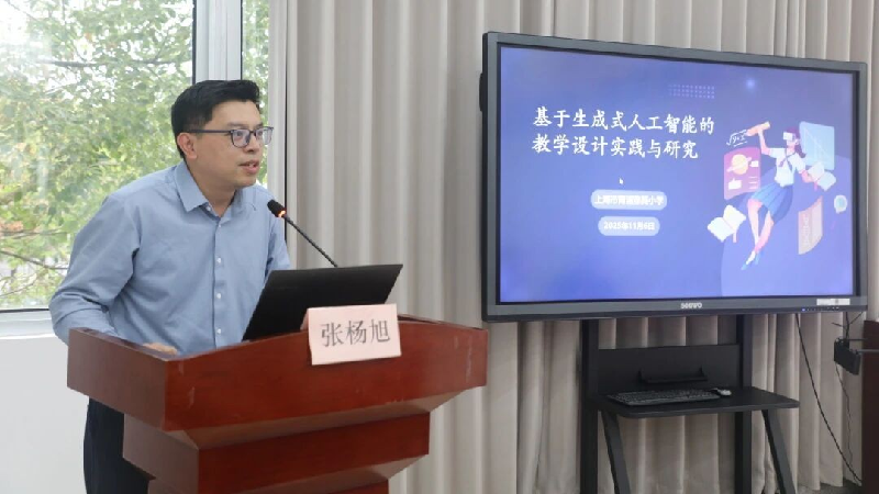 豫英小学副校长张杨旭做《基于生成式人工智能的教学设计实践与研究》专题讲座,从生成式AI的技术特点出发,阐述如何利用生成式AI工具精准设定教学目标、科学筛选教学内容、创新设计教学活动以及优化教学评价体系,并分享实践问题、解决方法及成果案例,为参会教师提供解决思路与可行方案。