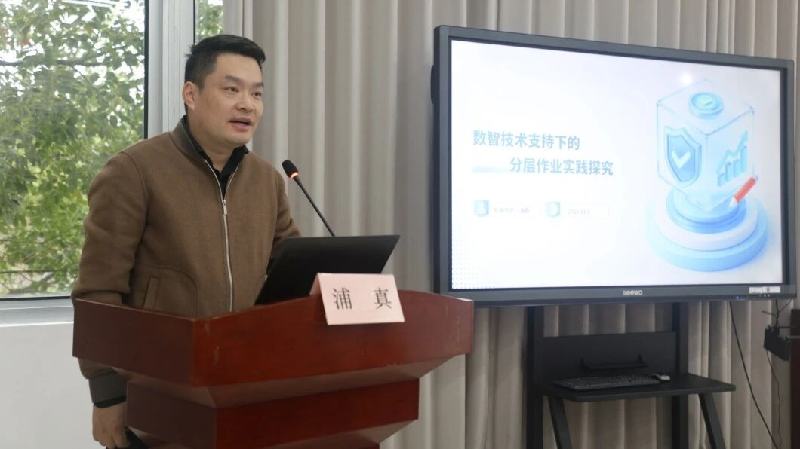 东湖中学党支部副书记浦真以《在数智技术支持下的分层作业实践研究》为题,介绍了如何利用AI大模型分析学情,精准把握学生学习情况与能力差异,设计个性化分层作业为“因材施教”提供了技术支撑。