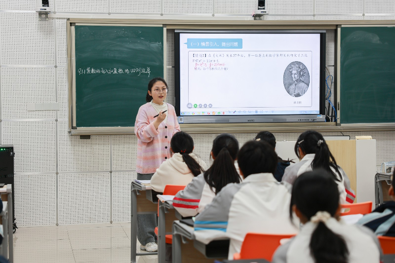 东湖中学沈颖老师执教《复数的引入》一课。她引入数学史上著名的“卡尔丹问题”,还原16世纪数学家面对虚数诞生时的探索历程,引导学生在解决认知冲突中感悟“敢于突破、严谨求证”的科学精神,实现“强师德”与“润心育”在数学课堂的有机融合。