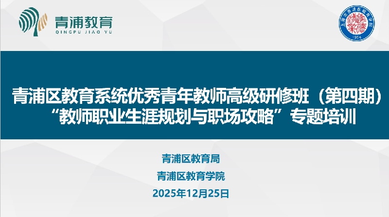 为促进青年教师专业成长,科学制定教师发展规划,2025年12月25日,青浦区教育系统优秀青年教师高级研修班(第四期)专题培训活动在青浦区教育学院第一会议室顺利举行。培训邀请上海新纪元双语学校校长、特级教师、正高级教师李海林授课。“优青班”(第四期)全体学员参与培训。