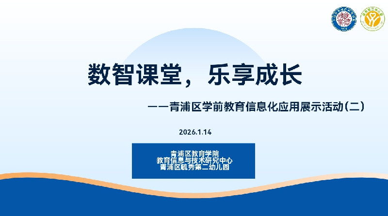 2026年1月14日上午,由青浦区教育学院教育信息与技术研究中心主办、青浦区毓秀第二幼儿园承办的“数智课堂,乐享成长”青浦区学前教育信息化应用展示活动在青浦区毓秀第二幼儿园顺利举行。青浦区教育学院教育信息与技术研究中心应用推进组负责人李娅、幼教教研员王鹂、研训员闫翔以及青浦区学前教育信息化应用研修协作组成员共同出席本次活动,活动由信息中心研训员华文君主持。