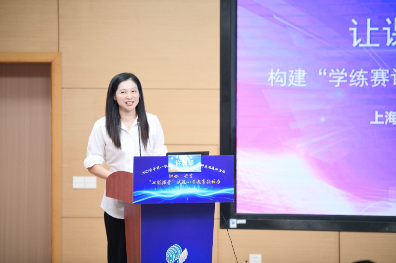 上海师范大学附属青浦实验学校党支部副书记许利琴作专题汇报《让课堂“活”起来:构建“学练赛评”一体化的小学体育课堂新样态》,分享了以“趣、思、乐”为特质的体育课堂教学模型,展现了“以体育人”的多元拓展。