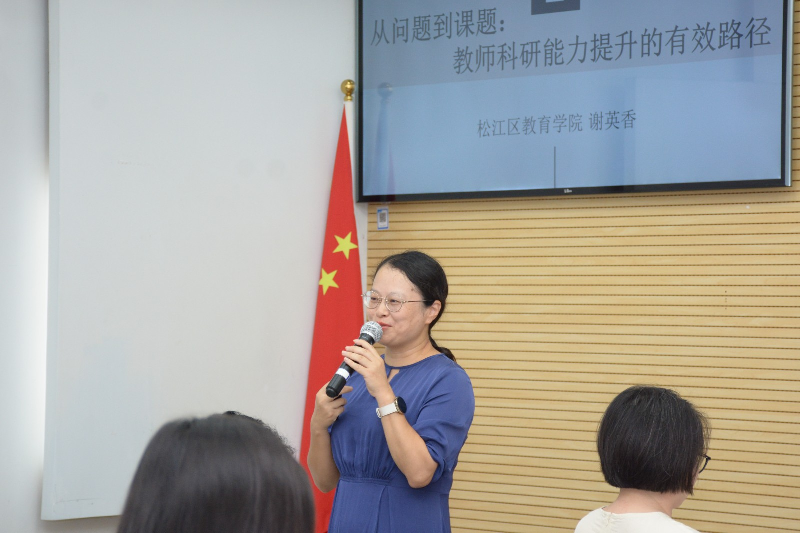 本次培训特邀松江区教科室主任谢英香作专家讲座。谢老师以“从问题到课题,教师科研能力提升的有效路径”为核心主题,针对科研选题这一“起点难题”,系统讲解了实用策略。她指出,选题是科研成功的关键,教师可通过查阅国家及地方教育政策文件、分析各级课题指南、关注年度立项课题方向等方式,精准把握科研热点与政策导向。选题需兼顾合法性与可行性,要充分评估学校研究条件、外部支持资源及数据获取难度,并重视研究团队合作,避免“单打独斗”。谢老师建议青年教师优先选择“小而真实”的研究项目,要学会从新的理论视角或研究方法出发,重新审视教学中的老问题,以此体现研究的创新性与实用性,确保科研成果能真正反哺教学、提升育人质量。