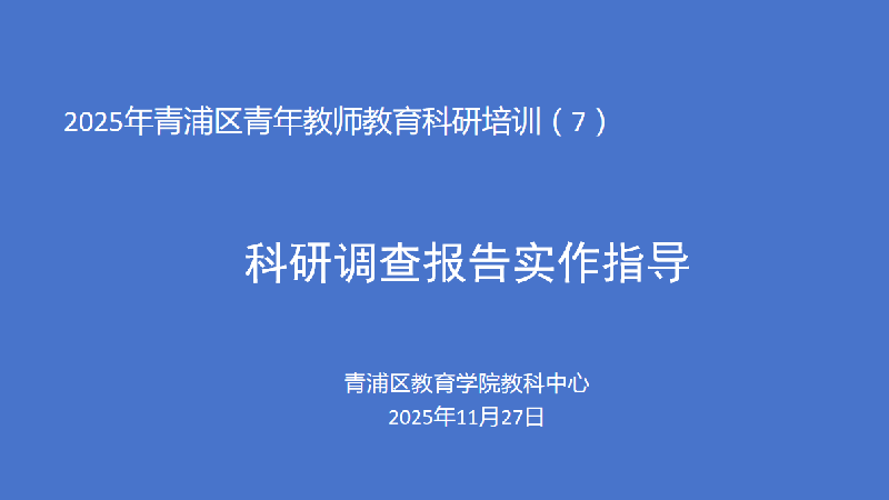 11月27日下午,青浦区教育学院教育科学研究中心组织开展了2025年青年科研骨干培训班第七次培训。本次培训聚焦“调查报告撰写与课题方案二次优化”,为全区60余名青年教师带来一场聚焦实战的科研“打磨课”。