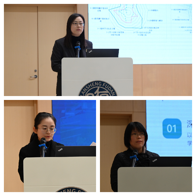 经验分享环节,赵楠老师以《基于循证教学改进视角的学校“十四五”教科研工作总结》为题,系统梳理了青浦兰生学校在循证教学改进、证据融合、课堂优化方面的教科研做法和实践成果。青浦一中教科室副主任王冬梅老师、青浦二中教科室主任徐晓翠老师分别就“十五五”学校教科研工作展望进行分享,提出将聚焦一体化研究、深化生态教育、构建跨学科项目、强化教师科研能力培训,推动科研成果向教学实践有效转化。