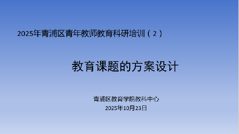10月23日下午,青浦区教育学院教育科学研究中心成功举办了2025年青年科研骨干培训班第二次培训:课题方案设计。本次培训特邀黄浦区教育学院教科室主任、正高级教师陈玉华老师担任主讲,青浦区青年科研骨干教师共计70余人参加学习。