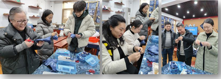 本次主题研修活动分三部分展开:《印染玩偶布料》一课教学观摩、主题研讨,及扎染体验:香包制作。