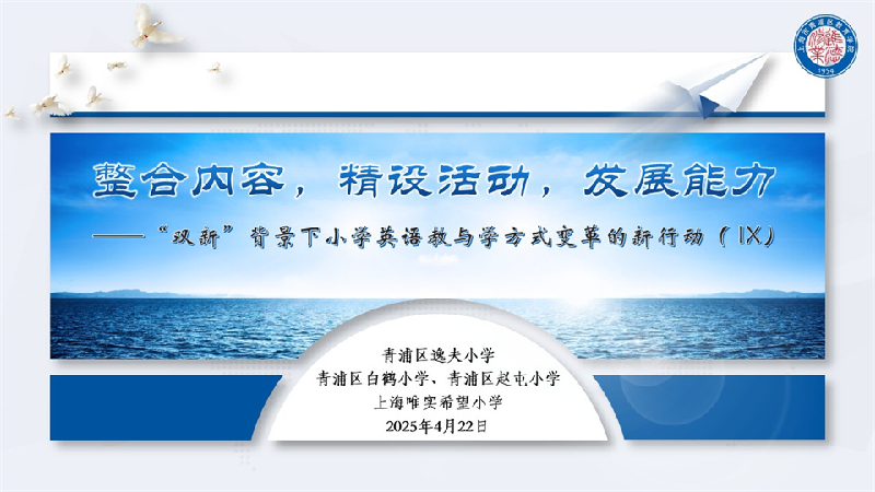 2025年4月22日下午,青浦区“双新”背景下小学英语教与学方式变革新行动系列研修的第9场活动在青浦区逸夫小学顺利举行,本次活动主题为“整合内容,精设活动,发展能力”。 参加本次研修活动的有青浦区逸夫小学校长张剑老师、副书记李雯婷老师,区小学英语青年班全体成员、区内各小学二年级英语教师代表及逸夫小学全体英语教师,共计80余人。活动由青浦区教育学院课程与教学研修中心教研员张敏稚老师主持,研修中心副主任周根妹老师莅临指导。