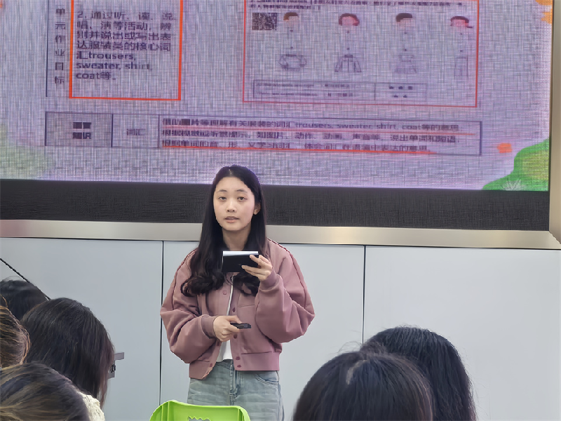 随后,白鹤小学张月萍老师和逸夫小学李佳珺老师分别进行了本单元第一课时Clothes for a trip和第二课时A warm sweater的课堂教学展示。张老师扎实稳健地推进课堂,引导学生学习与体会如何根据不同的天气选择合适的衣物,语言实践活动层层递进,有条不紊。李老师运用多模态语篇带领学生学习故事,引导学生仔细观察故事配图、获取关键信息并有序梳理故事发展脉络。课堂中,学生积极投入角色扮演,加深对故事主题意义的感悟;有序复述故事概要,发展语言能力和思维品质。