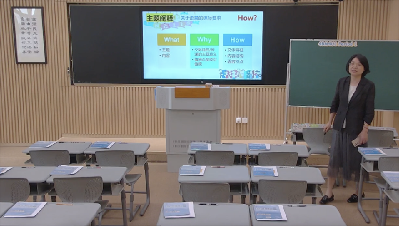 接着,青浦兰生学校徐昕怡老师基于牛津上海版 4BModule4 Unit1单元,从“落实课标要求,明确主题意义,挖掘育人价值”、“研析语篇阅读,梳理逻辑关系,优化整体设计”、“优化学习活动,体验故事寓意,提升思维品质”三方面就单元整体设计思路和各课时学习任务、典型活动等方面进行了说明和阐述。