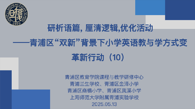 2025年5月13日下午,主题为“研析语篇,厘清逻辑,优化活动”的小学英语学科区域主题研修活动在青浦兰生学校成功举办。本次活动是2024学年青浦区“双新”背景下小学英语教与学方式变革新行动的第十场活动。活动由区教育学院研修中心小学英语教研员周根妹老师主持。区教育学院研修中心教研员张敏稚老师、兰生学校小学部教导主任杨路老师、区内各小学和九年一贯制小学部四年级英语教师及兰生学校小学部全体英语教师共计90余人参与了本次活动。