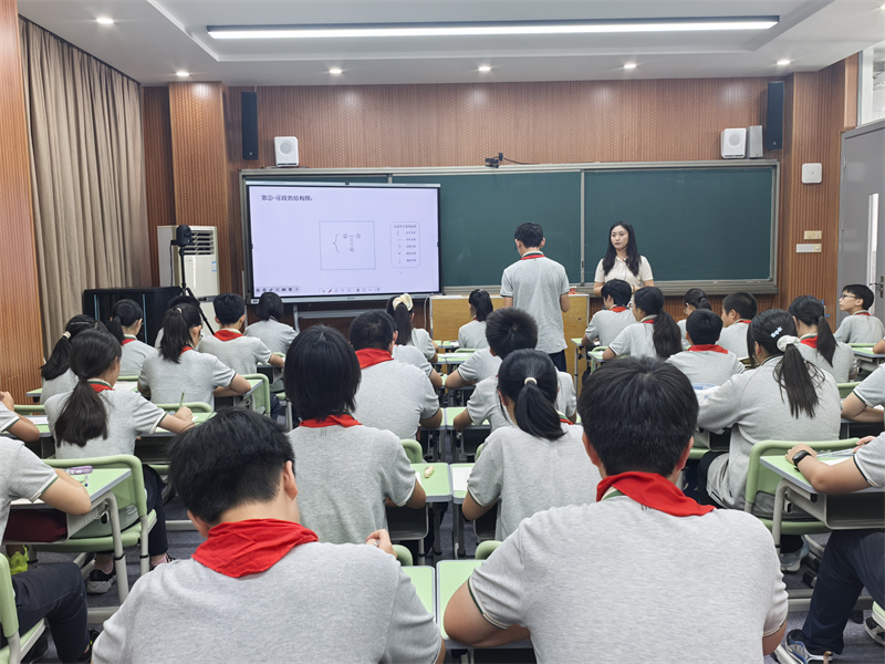 实验中学杨旖旎老师以《梳理行文思路——以〈死海不死〉为例》展开课堂教学。杨老师对前测数据进行归因分析后,将本节课学习内容定为:梳理行文思路。首先引导学生捕捉标志性语句,提取显性信息;接着指导学生区分事实与观点、观点与观点之间的关系,分析段落内部及段落之间的关系;最后以小组合作方式梳理全文各部分之间的内在联系,推断作者情感态度,以此归纳出梳理事物类说明文行文思路的方法和路径。整堂课以结构化活动推动学生深度思考,落实学法指导。