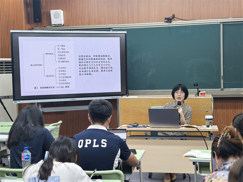 上海师范大学人文学院高翀骅教授带来“文本解读及其教学转化”主题讲座。她结合艾布拉姆斯文本解读四要素,提出知人论世、分类辨体、整体感知等核心解读环节,重点讲解“基于体式”“互文参照”“文本细读”三大方法以及文本解读的结果应用,强调教师应探索化“读”为“解”的有效策略,通过创设可实践的、多样的学习活动,还原文本细读的过程。案例与理论的互证贯穿整个讲座,为教师搭建了“解读—转化”的桥梁。