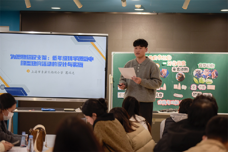 在专题交流环节,上海青浦区世外学校朱程炜老师、尚鸿小学葛鸿达老师及佳禾小学朱磊老师,分别围绕《AI赋能下学生科学探究中的模型建构能力》《为思维搭设支架:低年级科学课堂中模型建构活动的设计与实施》《从“答案评价”到“思维可视”——交互式任务设计的实践与思考》展开分享。三场交流共同指向一个核心:技术工具的真正价值,在于服务于教育本质,让不可见的思维过程得以呈现与发展,助力学生成为积极的建构者与思考者。
