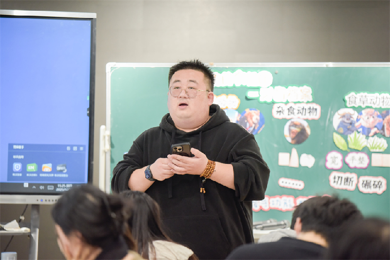 上海市青浦区尚鸿小学夏艳婷老师执教的《动物的食性》一课,则展现了情境化与技术融合的魅力。本节课具有三大亮点:其一,以“为动物城建立牙齿档案”这一趣味情境贯穿始终,有效激发学生主动探究的热情;其二,融入工程实践环节,引导学生经历“观察—设计—制作”的完整流程,在动手协作中深化对结构与功能关系的理解;其三,巧妙运用AI生成视频、智能对话助手与交互平台等技术工具,帮助二年级学生直观获取信息、高效完成档案制作,在便捷而具趣味的学习过程中拓展科学认知与实践能力。